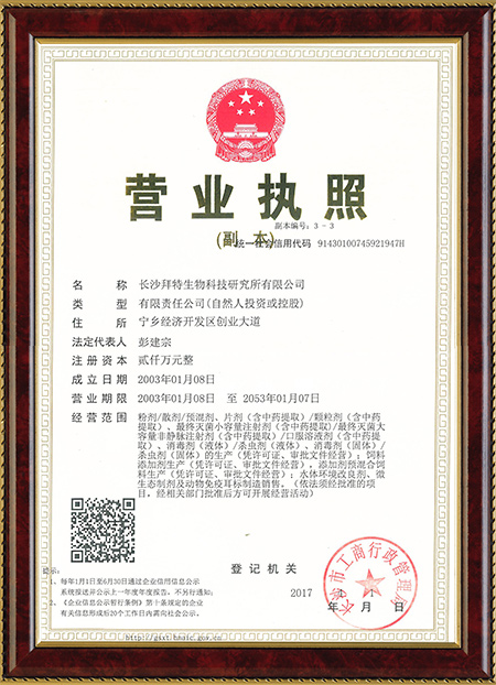 我公司被評為中國獸藥制劑30強企業(yè),并擔任中國口蹄疫學會常務(wù)理事會單位、湖南省動保協(xié)會副理事長單位、湖南省養(yǎng)豬協(xié)會副會長單位等職務(wù).同時還被授予高新技術(shù)企業(yè)(編號為GR201243000183)、湖南省質(zhì)量信用等級A級企業(yè)、長沙市企業(yè)技術(shù)中心。