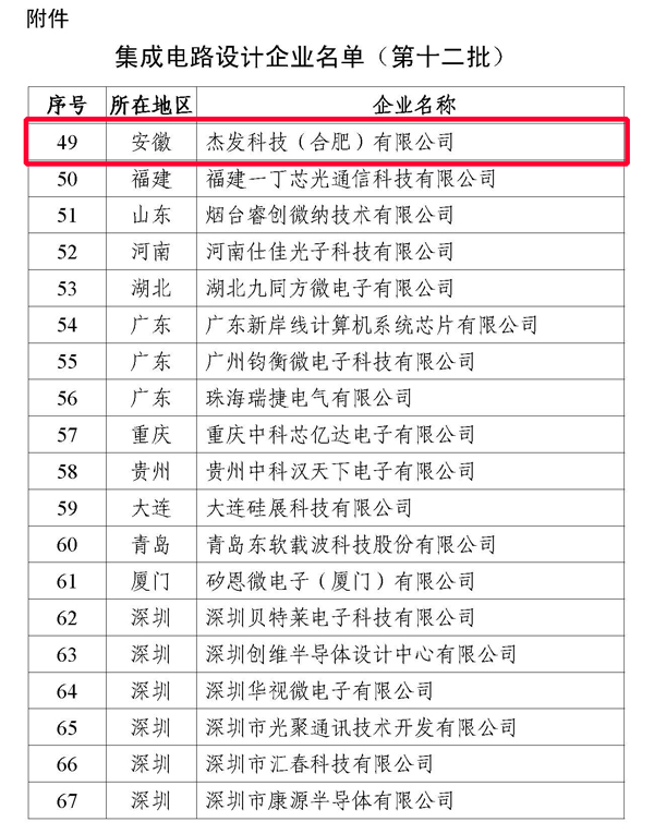 我市杰發(fā)科技(合肥)有限公司被認(rèn)定為國家集成電路設(shè)計(jì)企業(yè)。本批安徽省僅兩家企業(yè)入圍,杰發(fā)科技為其中之一。杰發(fā)科技作為我市集成電路招商引資企業(yè),對促進(jìn)集成電路產(chǎn)業(yè)快速發(fā)展乃至產(chǎn)業(yè)集聚具有重要意義