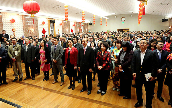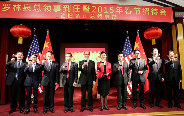 2015年2月12日晚,中國駐舊金山總領(lǐng)事羅林泉夫婦在總領(lǐng)館舉行到任暨春節(jié)招待會。舊金山灣區(qū)新僑、臺胞、留學(xué)生、中資機(jī)構(gòu)及各界代表600余人歡聚一堂,共慶農(nóng)歷羊年春節(jié)。我公司總裁陶鴻先生也應(yīng)邀參加招待會,并與羅林泉總領(lǐng)事和蔣玉洪科技參贊進(jìn)行了親切的交談。
