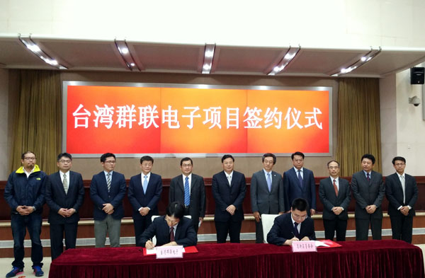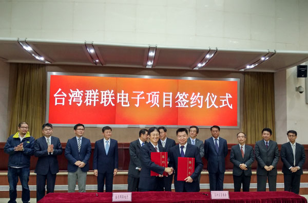 2015年5月27日下午,臺灣群聯(lián)電子研發(fā)基地項目簽約儀式在合肥市政務(wù)中心舉行。省委常委、市委書記吳存榮出席儀式,并在儀式前會見了群聯(lián)電子董事長潘健成一行。市委副書記、市長張慶軍,市委常委、副市長黃文濤出席儀式并參加會見。群聯(lián)電子董事長潘健成與合肥市高新區(qū)管委會副主任陳華分別代表雙方簽署了合作協(xié)議。