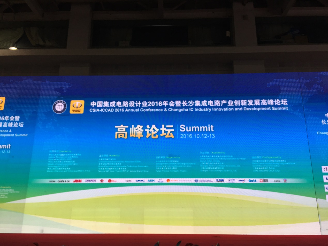 2016年10月12日至13日,中國集成電路設(shè)計業(yè)2016年會暨長沙集成電路產(chǎn)業(yè)創(chuàng)新發(fā)展高峰論壇在長沙召開。本屆年會由中國半導(dǎo)體行業(yè)協(xié)會、湖南省經(jīng)濟和信息化委員會和“核高基”國家科技重大專項總體專家組共同主辦。湖南省副省長張劍飛、工信部電子司副司長彭紅兵、國家集成電路產(chǎn)業(yè)投資基金總裁丁文武、中國半導(dǎo)體行業(yè)協(xié)會副理事長陳賢等領(lǐng)導(dǎo)出席會議并出致辭。來自業(yè)界的知名企業(yè)和數(shù)百名代表參加了本次年會。我公司代表也參加了本次會議。