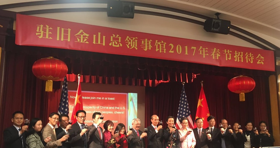 1月20日,我國駐舊金山總領事羅林泉在總領館舉行2017年春節(jié)招待會。舊金山市市長李孟賢、加州眾議員朱感生、薩拉度加市市長朱淑玲、著名僑領方李邦琴等知名人士到場祝賀,灣區(qū)新僑、臺胞、留學生、中資機構等各界代表近700人歡聚一堂,共迎丁酉雞年春節(jié)。