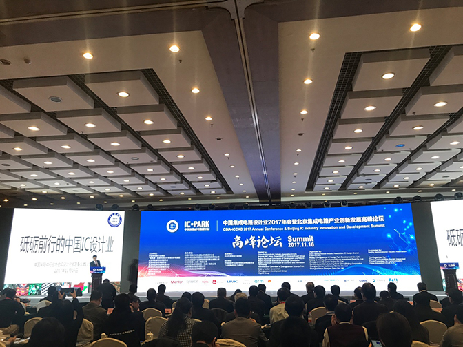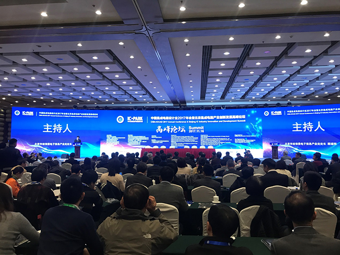 11月16日-17日,由工業(yè)和信息化部指導(dǎo),中國(guó)半導(dǎo)體行業(yè)協(xié)會(huì)等單位主辦的“中國(guó)集成電路設(shè)計(jì)業(yè)2017年會(huì)暨北京集成電路產(chǎn)業(yè)創(chuàng)新發(fā)展高峰論壇”在北京舉行。來(lái)自科技部、工信部、中國(guó)半導(dǎo)體協(xié)會(huì)的相關(guān)負(fù)責(zé)人以及國(guó)內(nèi)外有關(guān)專(zhuān)家、各地方產(chǎn)業(yè)基地和行業(yè)協(xié)會(huì)代表、國(guó)內(nèi)外集成電路設(shè)計(jì)企業(yè)及IP服務(wù)廠商、EDA廠商、Foundry廠商、封裝測(cè)試廠商、系統(tǒng)廠商、風(fēng)險(xiǎn)投資公司和有關(guān)媒體代表等1600余人參加了會(huì)議。我司的代表也參加了本次會(huì)議。